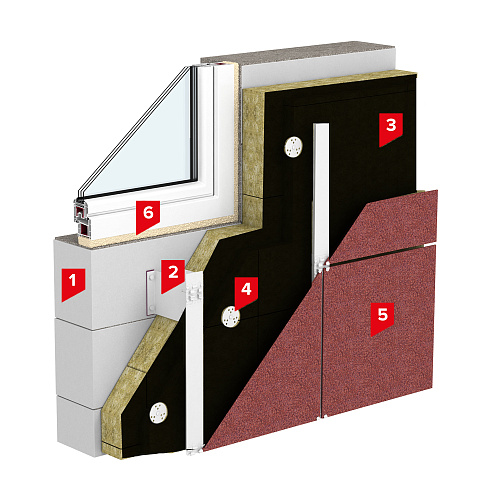 За рахунок рухомої частини несучого кронштейна і особливого кріплення несучого профілю до нього, система нівелює нерівності стін. При монтажі системи відсутні мокрі процеси, тому роботи виконуються незалежно від погодних умов (мінусові температури).